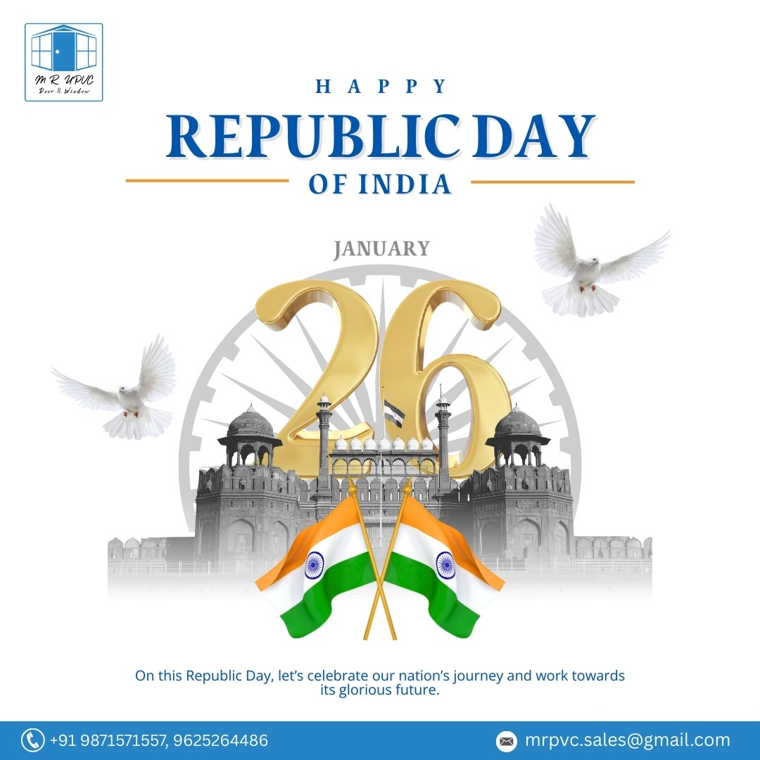 On this proud day, we celebrate the spirit of unity, integrity, and progress. At M R UPVC, we are committed to building strong, secure, and modern spaces—just like our nation. #HappyRepublicDay #RepublicDayIndia #ProudToBeIndian #MRUPVC #UPVCDoors #UPVCWindows #MadeInIndia #StrongIndia #BuildWithQuality